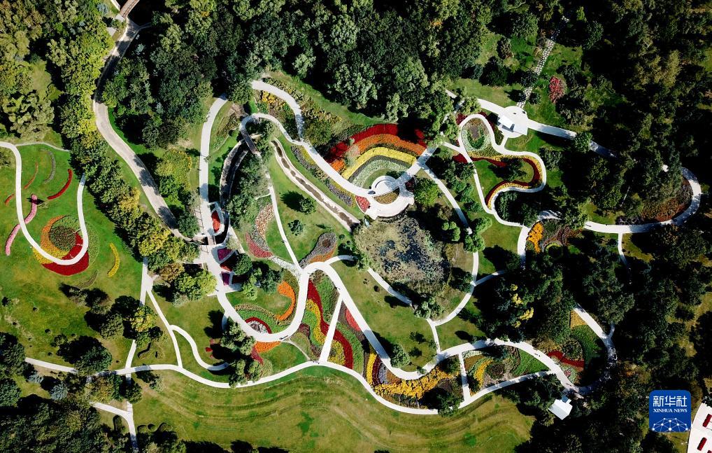 這是9月11日拍攝的太陽島風景區花卉園(無人機照片)。