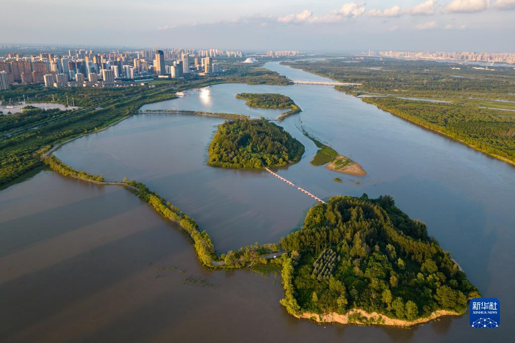 這是7月31日拍攝的太陽島西區一湖三島景觀(無人機照片)。