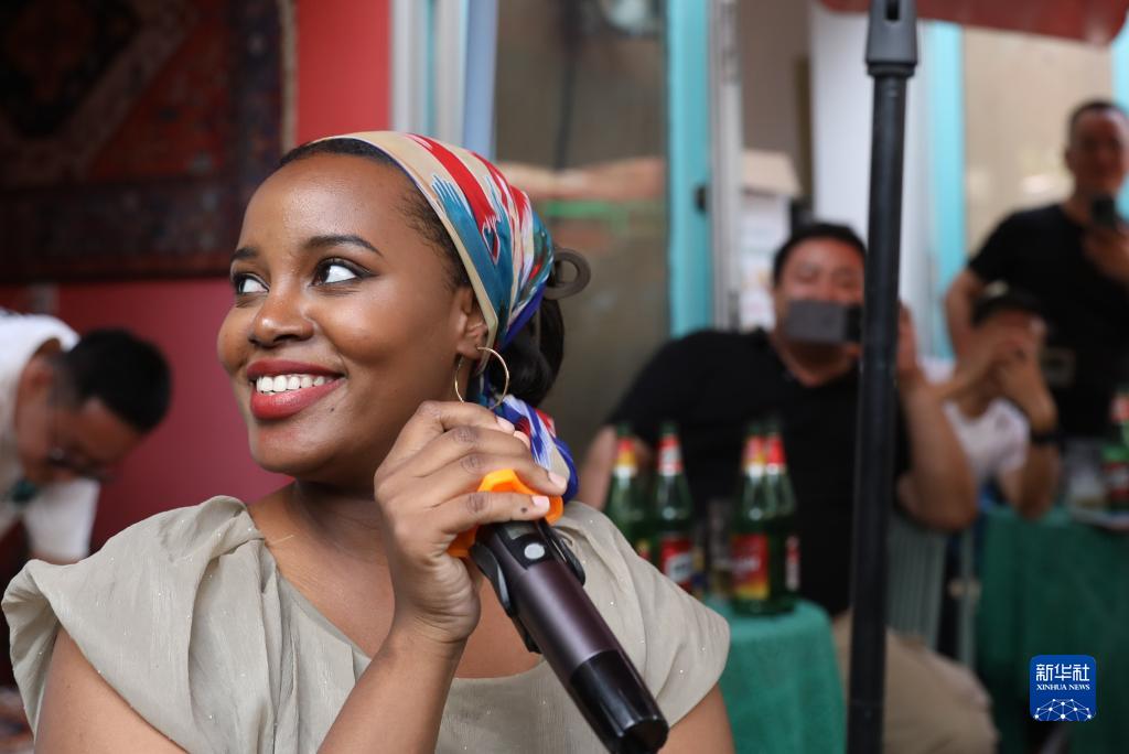 海迪雅在自家咖啡館前唱歌(9月7日攝)。