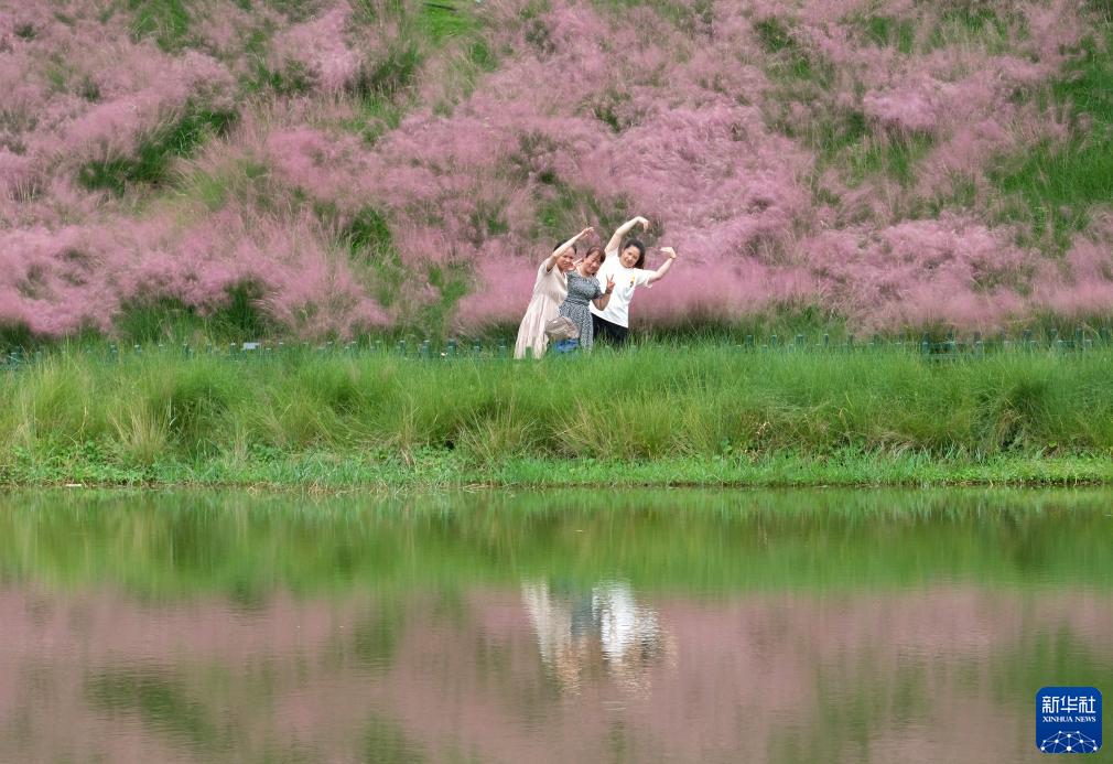 近日,廣西南寧市園博園里的粉黛亂子草陸續披上粉紅“衣裳”,宛如一抹粉紅色的云霞。