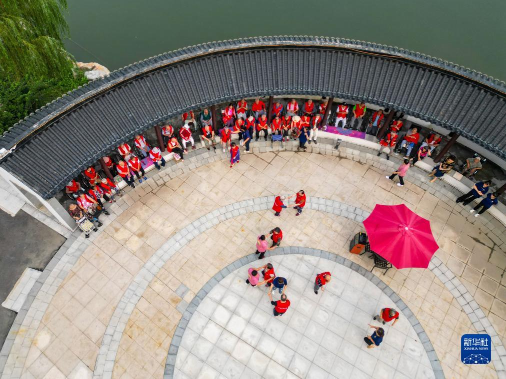 9月12日,河北省唐山市古冶區一家養老機構的老人們在院子里休閑(無人機照片)。