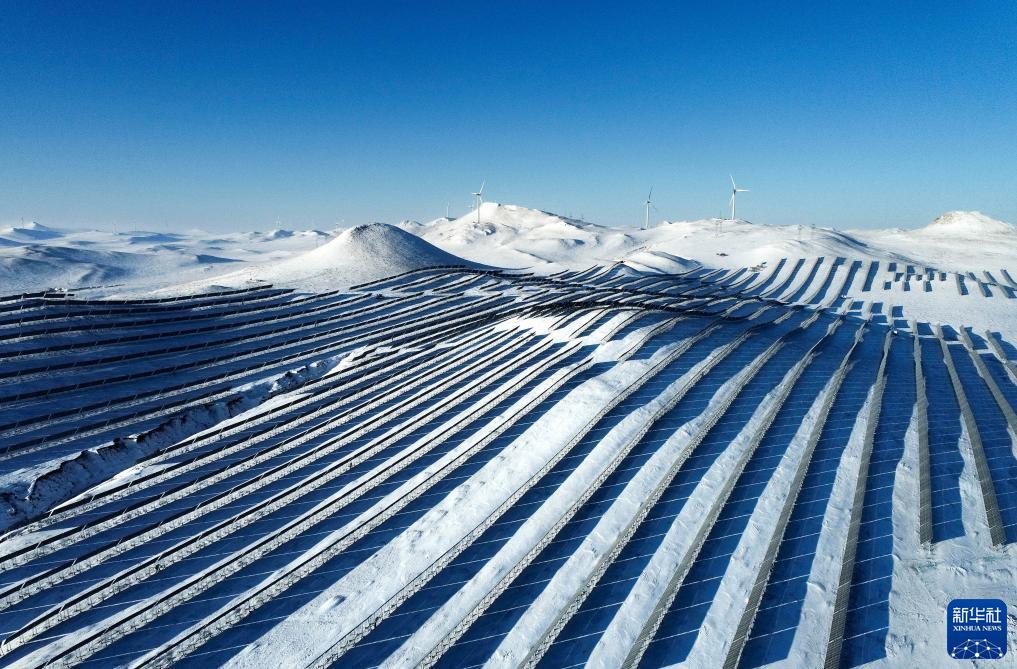 這是在內蒙古霍林郭勒市拍攝的霍林河循環經濟示范工程風電光伏基地(2023年2月23日攝,無人機照片)。