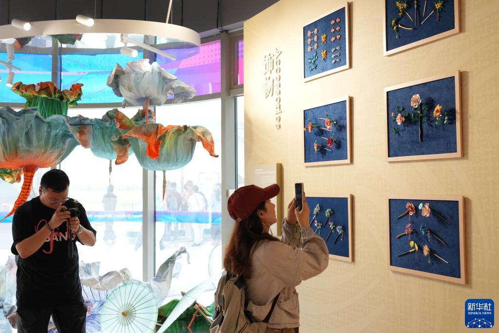 9月12日,媒體記者在參觀亞運村內展示的江南特色的飾物。