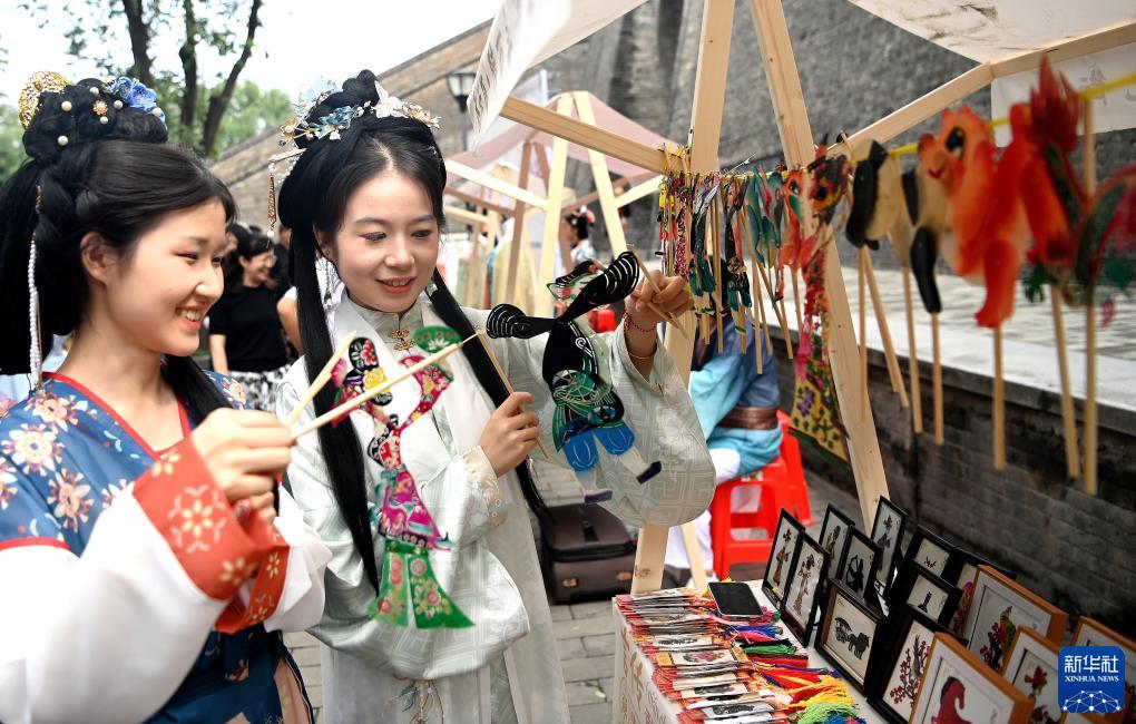 當日,陜西省西安市新城區“遇見城墻·非遺韻”非遺集市主題活動在西安城墻中山門下舉辦。秦腔、華陰老腔等特色非遺節目在永興坊戲樓前輪番表演,皮影、布藝、工藝葫蘆等二十多種非遺作品在順城巷內集中亮相,豐富市民文化生活的同時也讓游客感受到陜西非遺的獨特魅力。