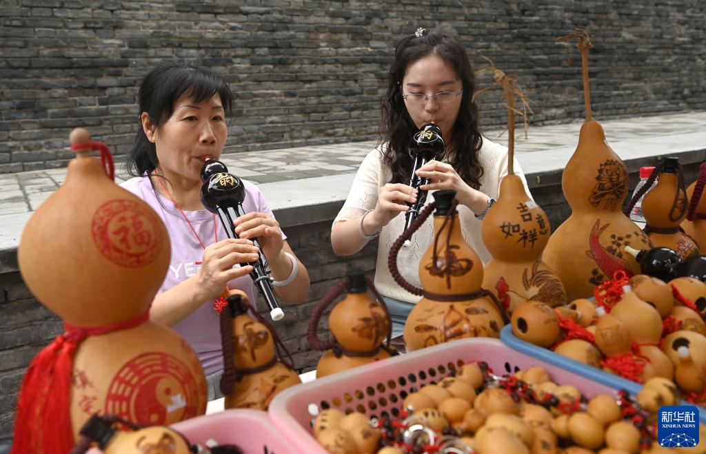 當日,陜西省西安市新城區“遇見城墻·非遺韻”非遺集市主題活動在西安城墻中山門下舉辦。秦腔、華陰老腔等特色非遺節目在永興坊戲樓前輪番表演,皮影、布藝、工藝葫蘆等二十多種非遺作品在順城巷內集中亮相,豐富市民文化生活的同時也讓游客感受到陜西非遺的獨特魅力。