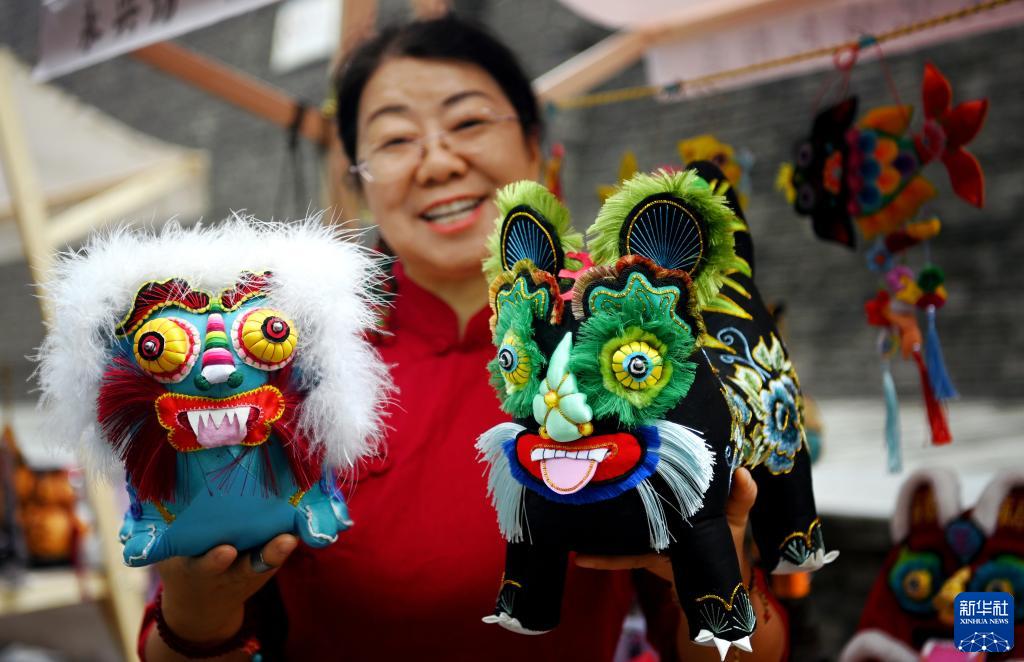 9月12日,西安市新城區“遇見城墻·非遺韻”非遺集市上,王氏布藝傳承人王海燕在展示自己的布藝作品。