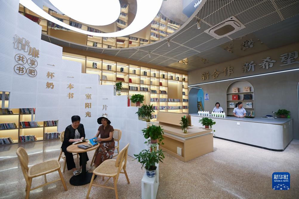 9月12日,建德市更樓街道更化社區的居民在鮮奶共富工坊的書吧內看書。