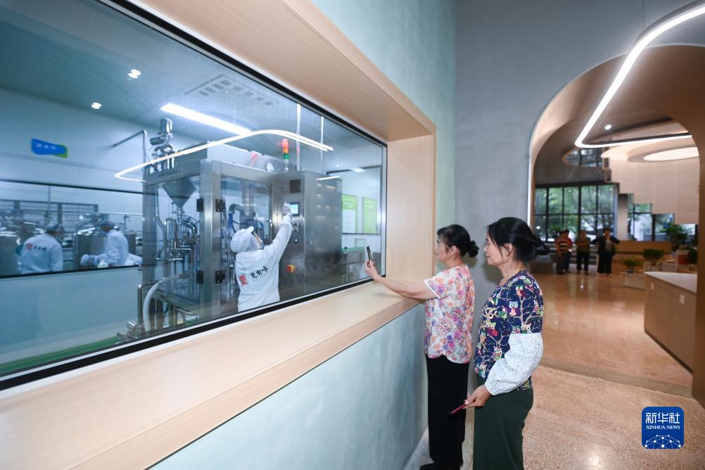 9月12日,建德市更樓街道更化社區的居民在鮮奶共富工坊內參觀鮮奶生產線。