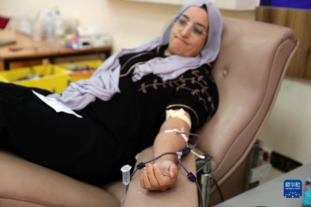 9月12日,一名女子在摩洛哥馬拉喀什一家血液捐獻中心獻血。
