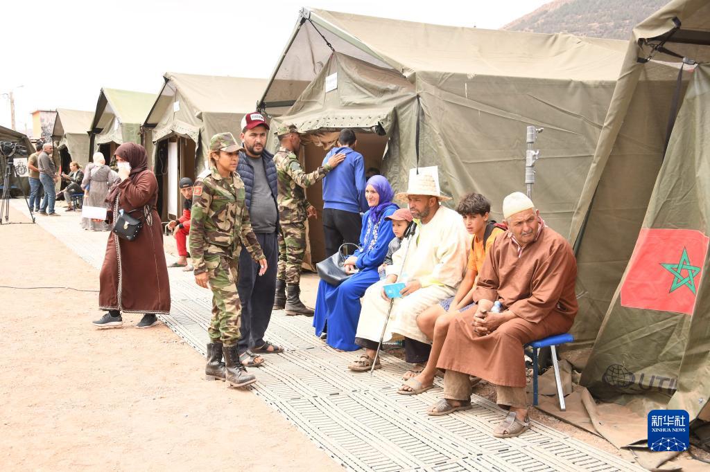 這是9月12日拍攝的位于摩洛哥豪茲省的艾斯尼村的臨時軍事醫院。