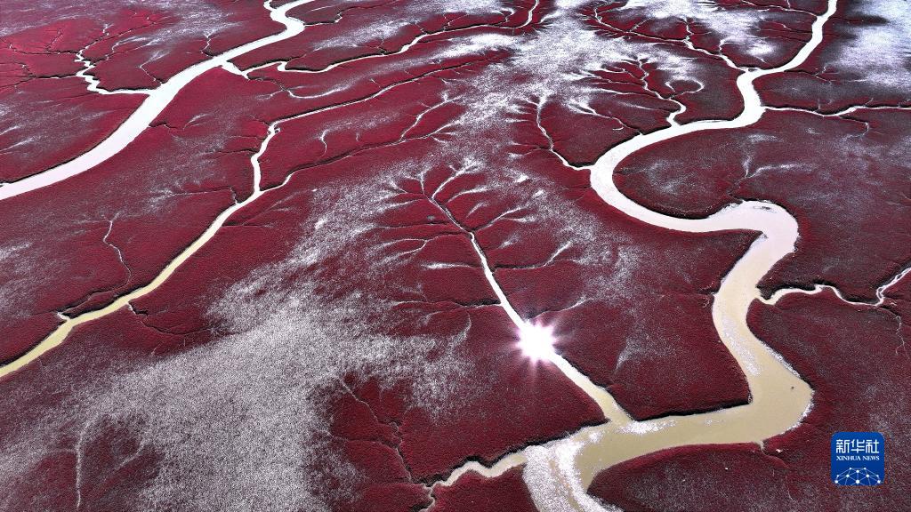 近日,遼寧省盤錦紅海灘國家風景廊道內的堿蓬草迎來最佳觀賞期,吸引了眾多游客前來觀賞游玩。