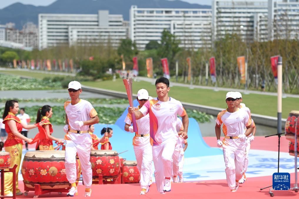 當日,杭州亞運會火炬在浙江省舟山傳遞。
