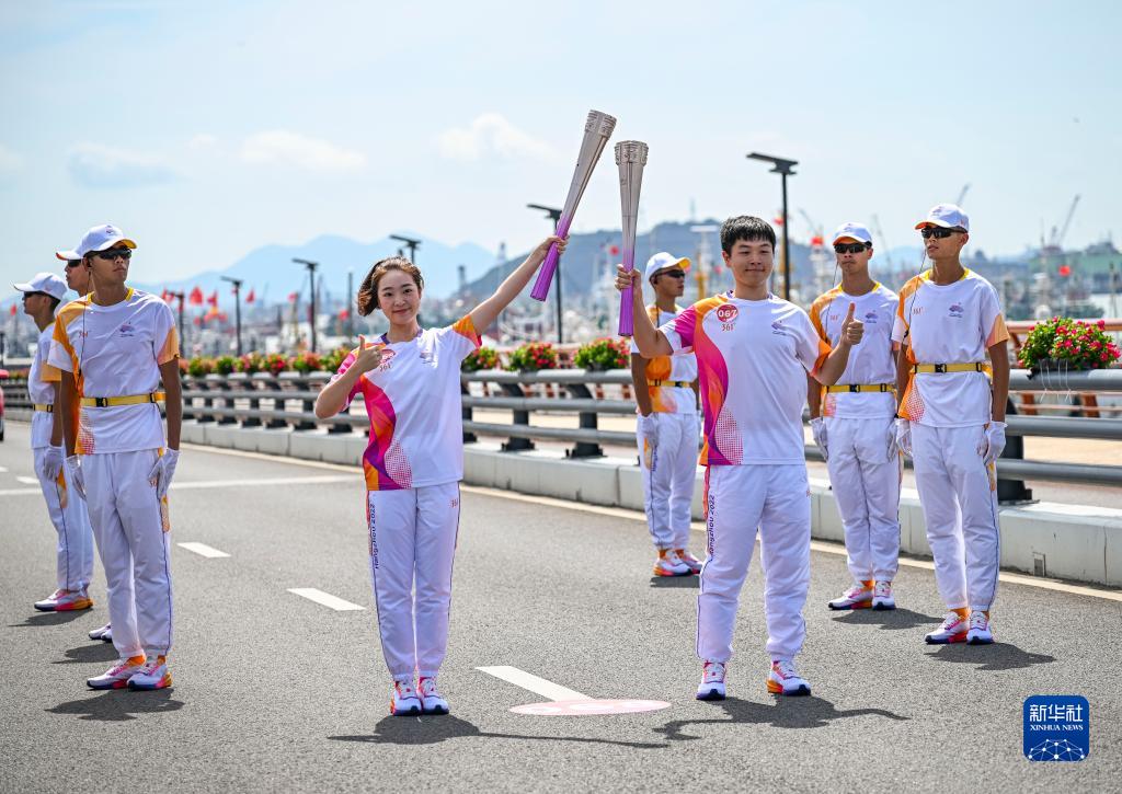 當日,杭州亞運會火炬在浙江省舟山傳遞。