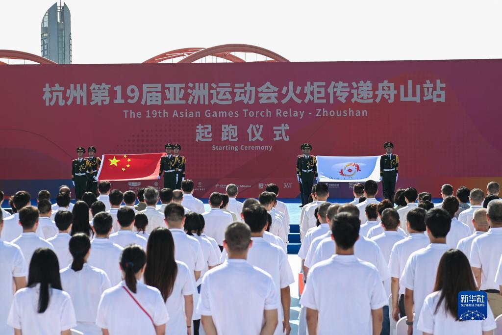 這是9月13日拍攝的杭州亞運會火炬傳遞舟山站起跑儀式。