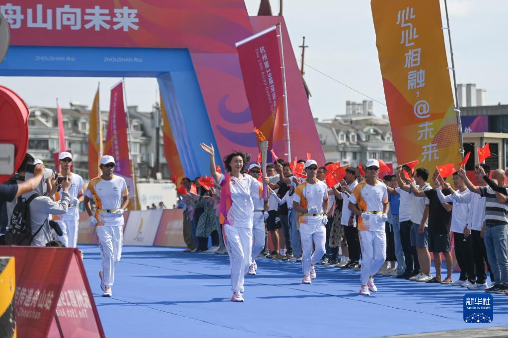 當日,杭州亞運會火炬在浙江省舟山傳遞。