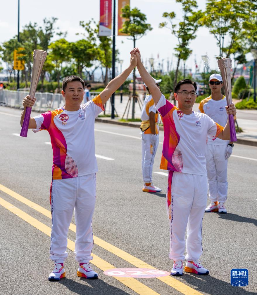 當日,杭州亞運會火炬在浙江省舟山傳遞。