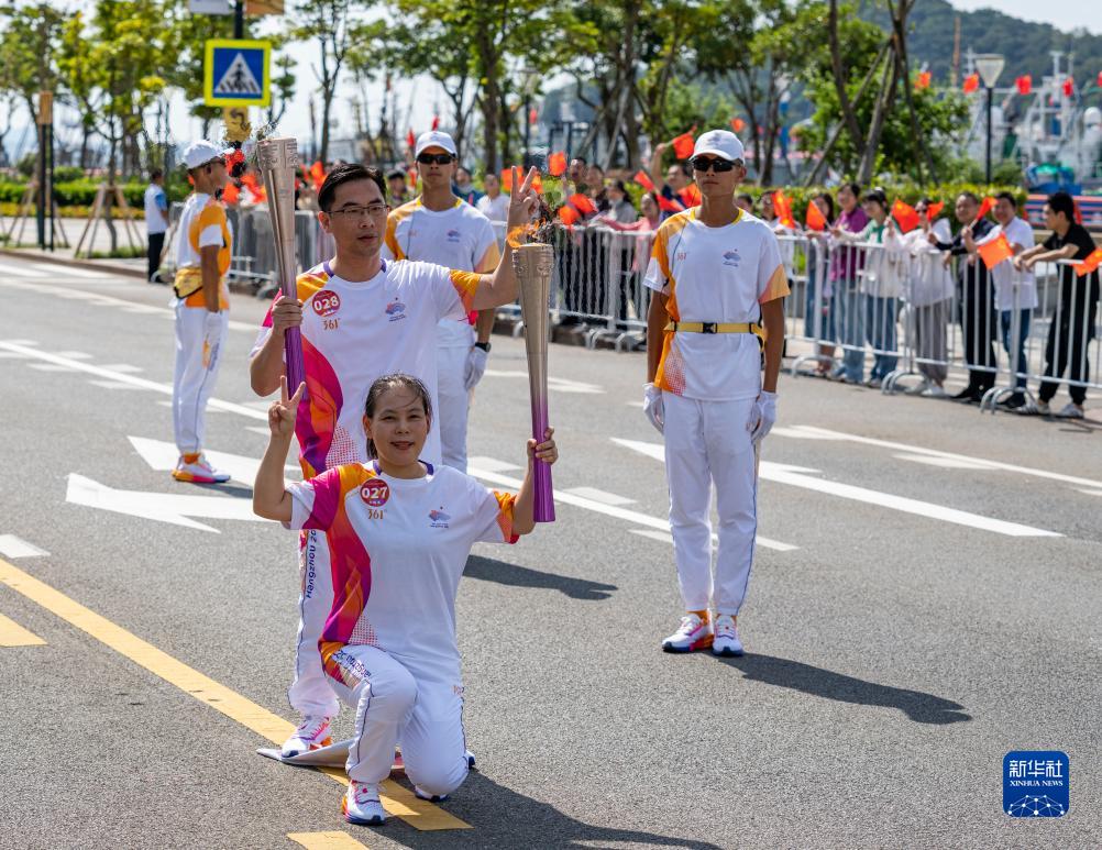 當日,杭州亞運會火炬在浙江省舟山傳遞。