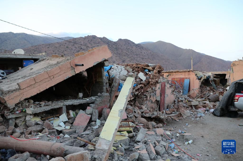 9月12日,在震中區域的摩洛哥豪茲省塔拉特恩雅庫布村,記者拍攝到大量被地震損毀建筑。