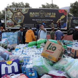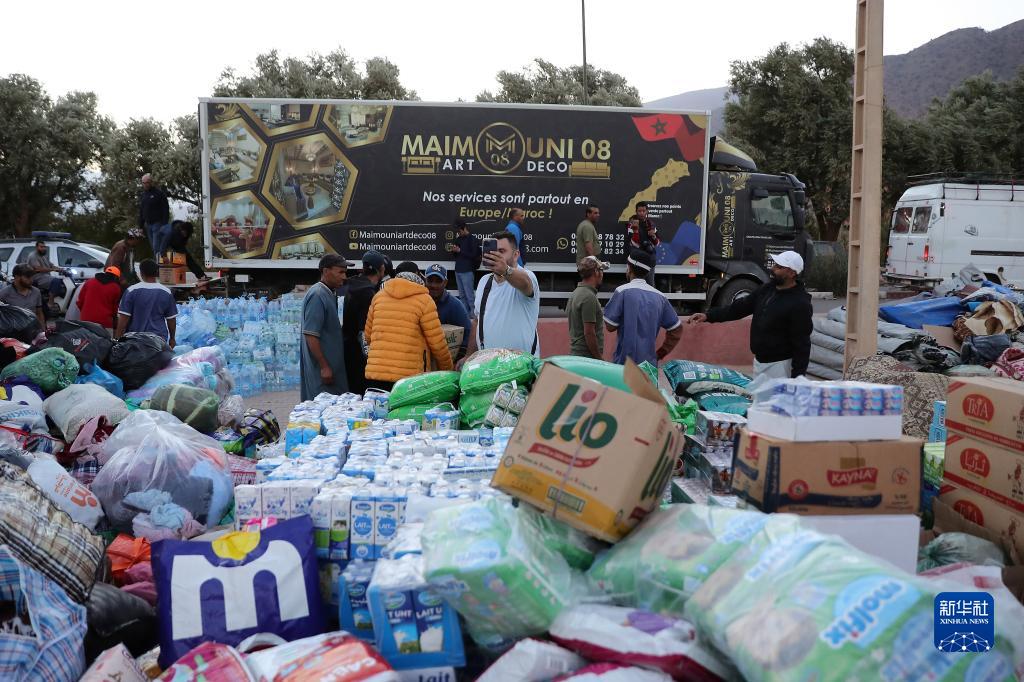 9月12日,救援物資在摩洛哥豪茲省的塔拉特恩雅庫布等待發放。