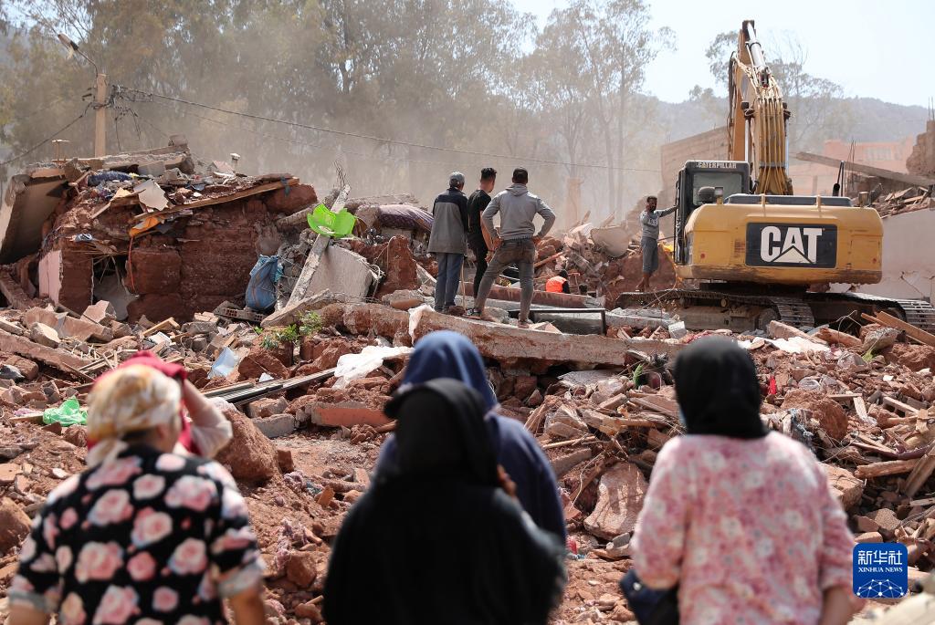 9月12日,一輛挖掘機在摩洛哥豪茲省的穆萊村清理廢墟。