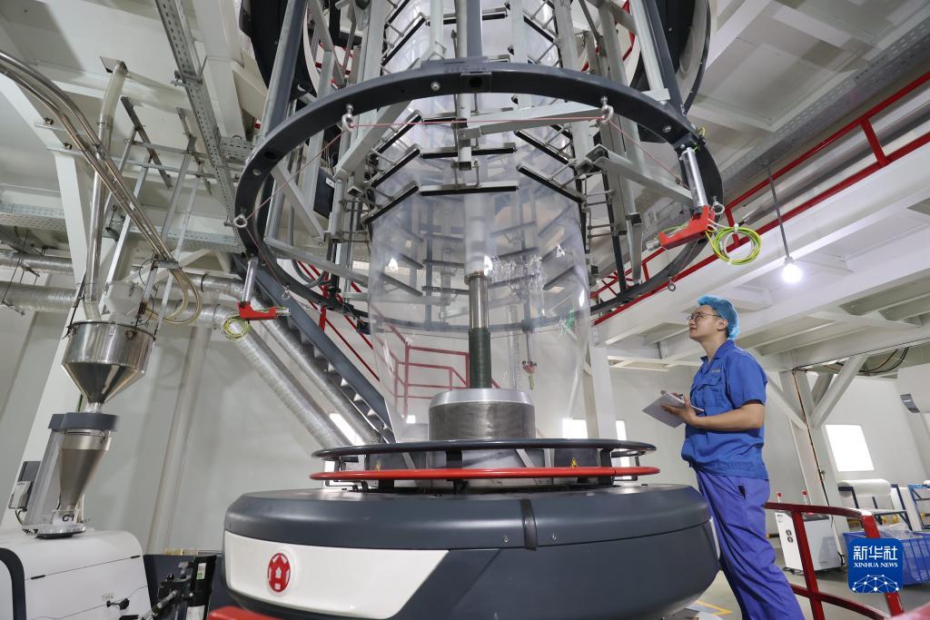 9月13日,德清縣禹越鎮一家新材料科技企業的工人在全自動生產線旁巡檢。