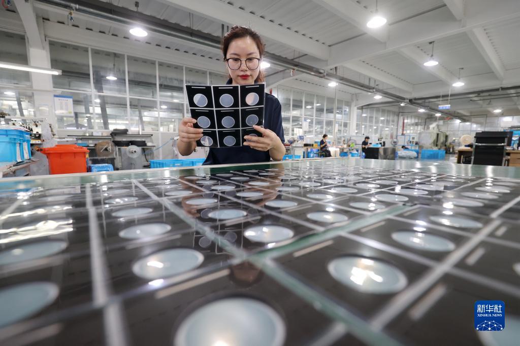9月13日,德清縣禹越鎮一家電子生產企業的工人在檢測安防裝飾板訂單產品。