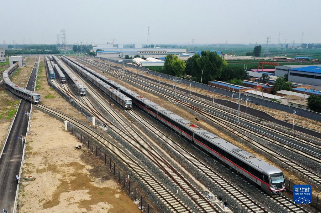 7月27日在河北省保定市滿城區河北京車智能制造基地試車場拍攝的地鐵列車(無人機照片)。