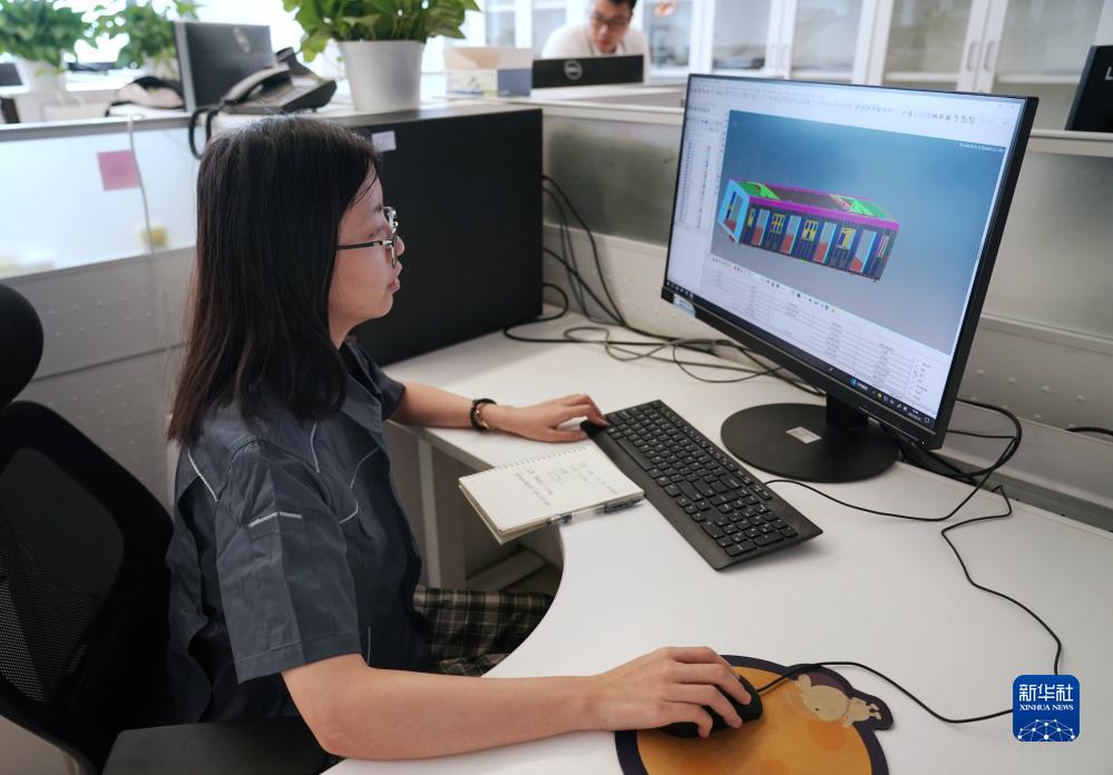 8月10日,京投裝備技術研究院的工程師在研究地鐵列車設計方案。