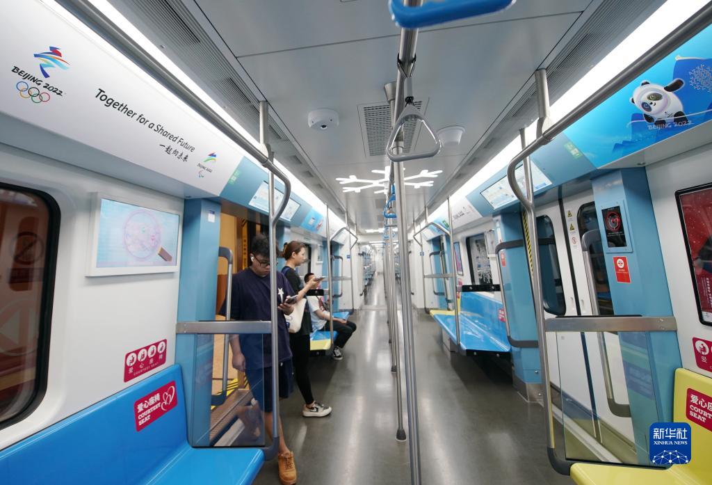 9月13日,乘客乘坐有冬奧元素裝飾的北京地鐵11號線(冬奧支線)出行。