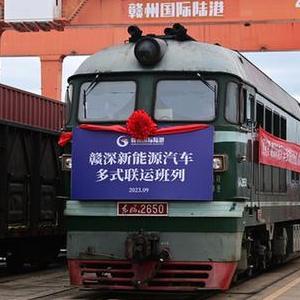 當日,一列滿載150輛新能源汽車專列由江西贛州國際陸港駛向深圳鹽田港。該趟專列將通過鐵海聯運方式,在深圳鹽田港裝船出海,發運至荷蘭鹿特丹港。這一多式聯運通道的順利開通,將助力中國汽車加速“出?!?。