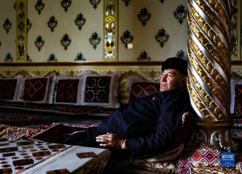 9月5日,巴依卡老人從早到晚接待了一百多名前來參觀和接受教育的客人,有些疲憊。新華社記者 蘭紅光 攝