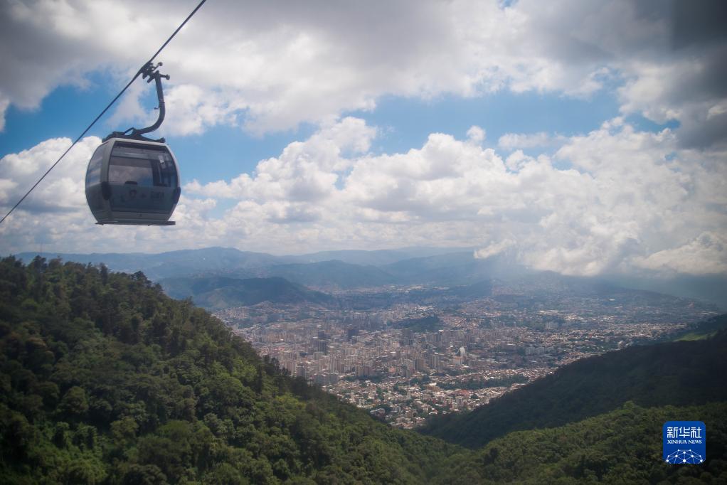 這是2018年12月28日拍攝的委內瑞拉首都加拉加斯著名旅游景點阿維拉山上的纜車。
