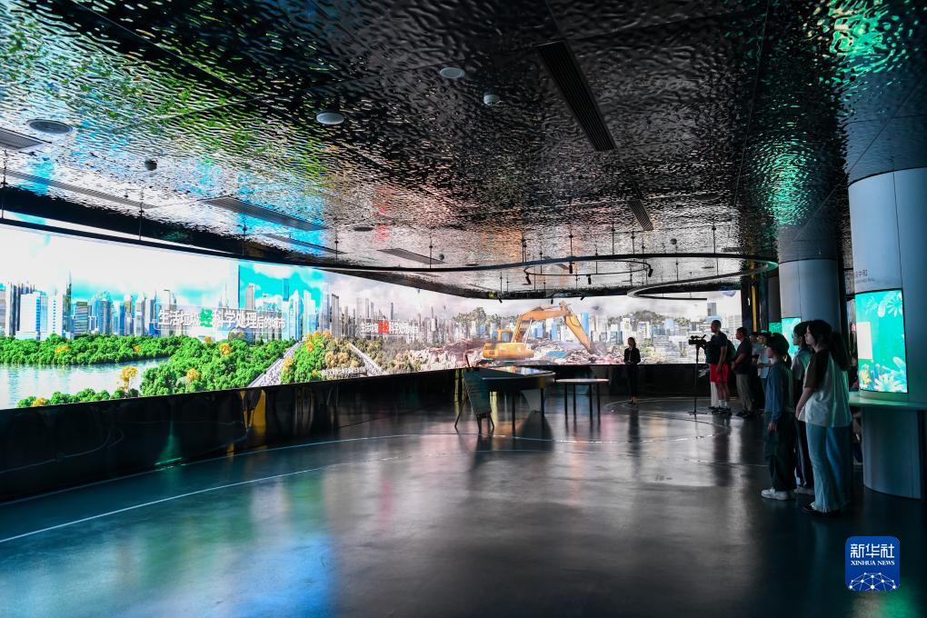 9月13日,學生們在深圳龍崗能源生態園觀看環保教育短片。