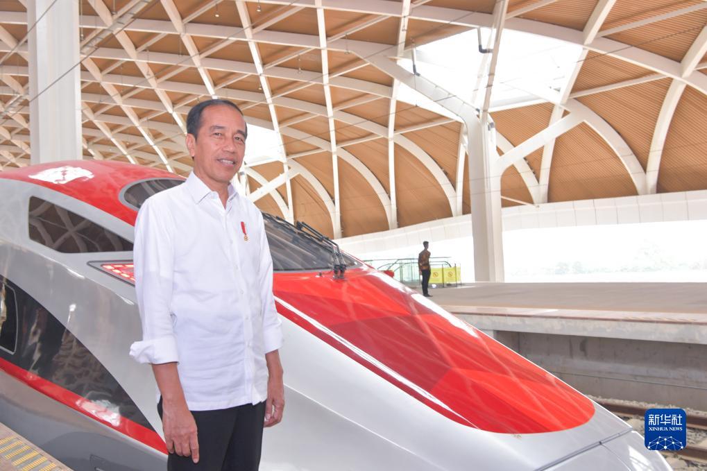 印度尼西亞總統佐科13日考察中印尼合作項目雅萬高鐵,在首都雅加達哈利姆站乘坐高鐵列車赴西爪哇省帕達拉朗站。他對兩國鐵路建設者付出的艱辛努力表示贊賞。