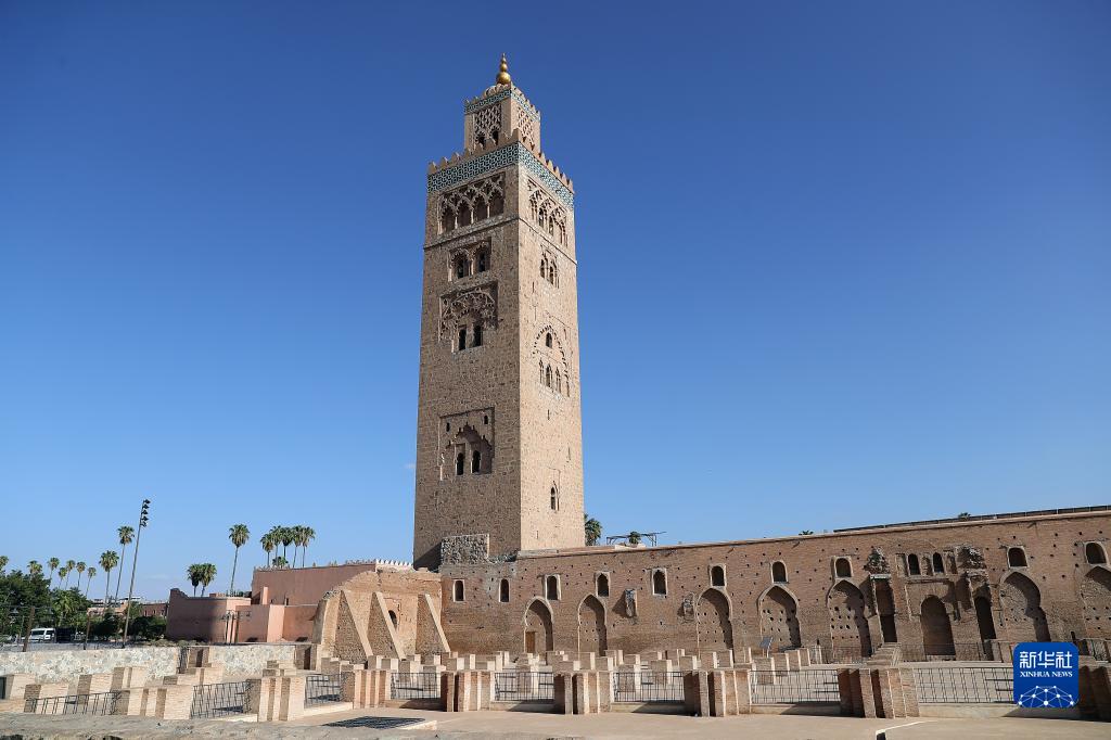 這是9月13日在摩洛哥馬拉喀什老城拍攝的庫圖比亞清真寺。該清真寺目前已暫停開放。