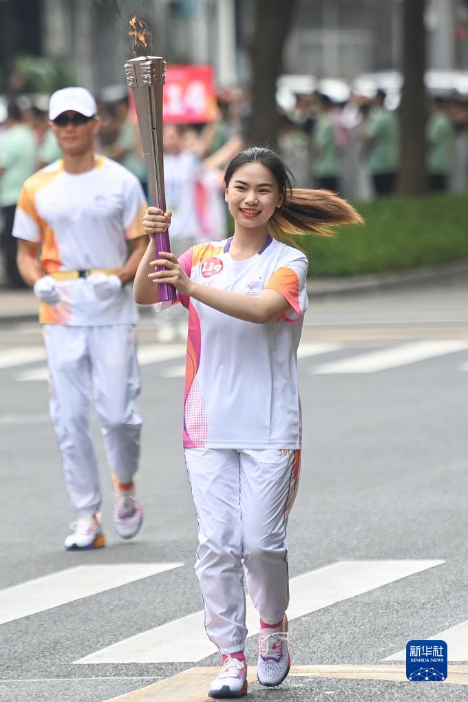 9月14日,火炬手謝燁欣在火炬傳遞中。