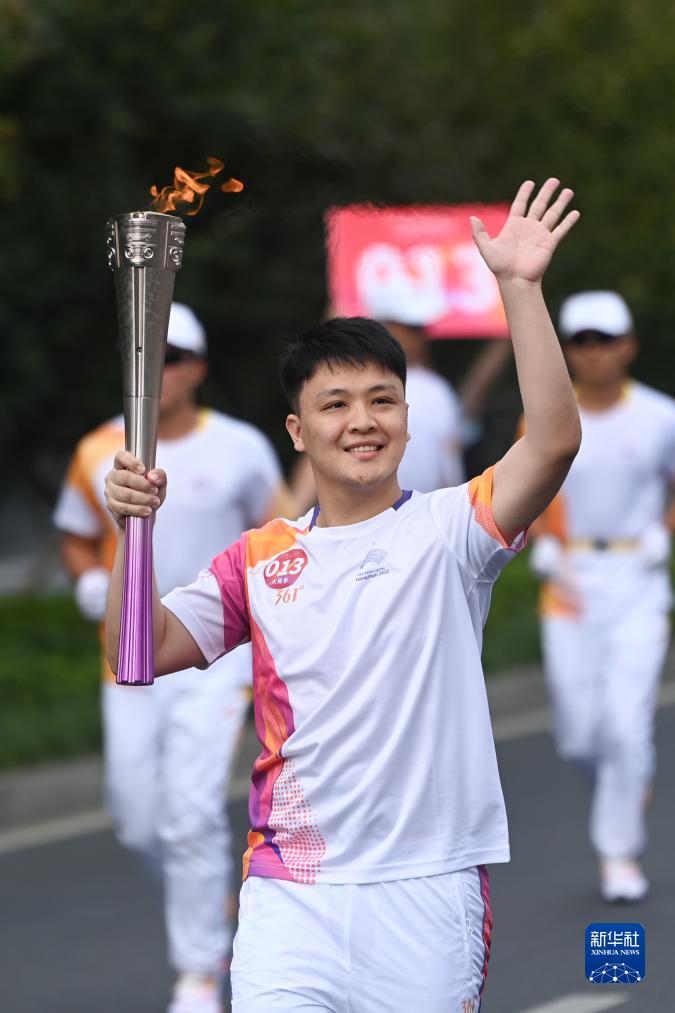 當日,杭州亞運會火炬在浙江臺州傳遞。