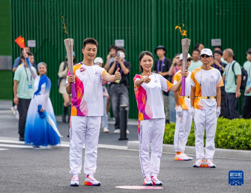 當日,杭州亞運會火炬在浙江臺州傳遞。