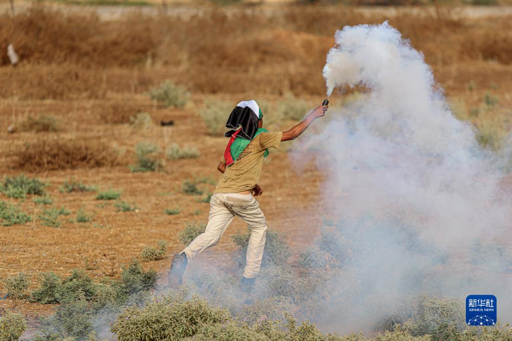 9月13日,在位于加沙城東部與以色列交界地區的圍欄附近,巴勒斯坦人參與示威活動。