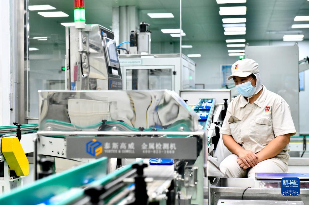 9月12日,在濱州中裕食品有限公司掛面生產車間,工作人員在流水線上值守。