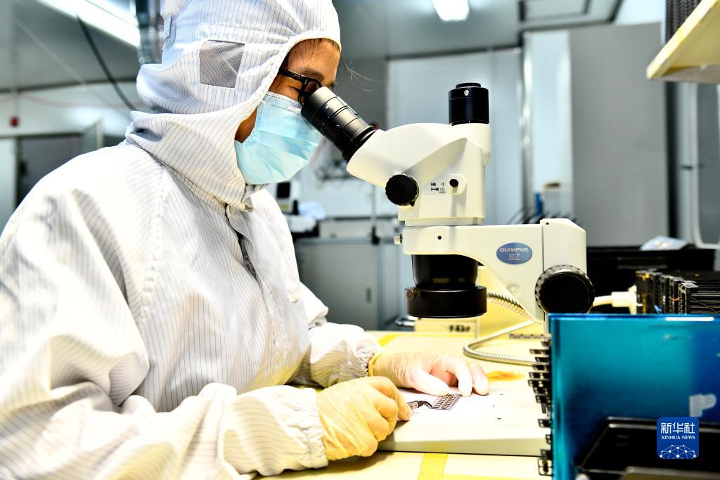 9月13日,在山東昊潤自動化技術有限公司壓力傳感器生產車間,工作人員在檢測傳感器質量。