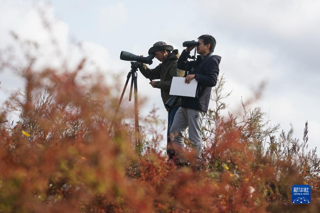 李征浩(右)和同事在濕地調查(2022年11月8日攝)。新華社記者 季春鵬 攝
