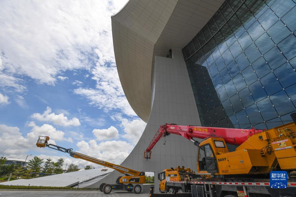 南沙國際金融論壇(IFF)永久會址交付使用前進行幕墻清潔(9月13日攝)。