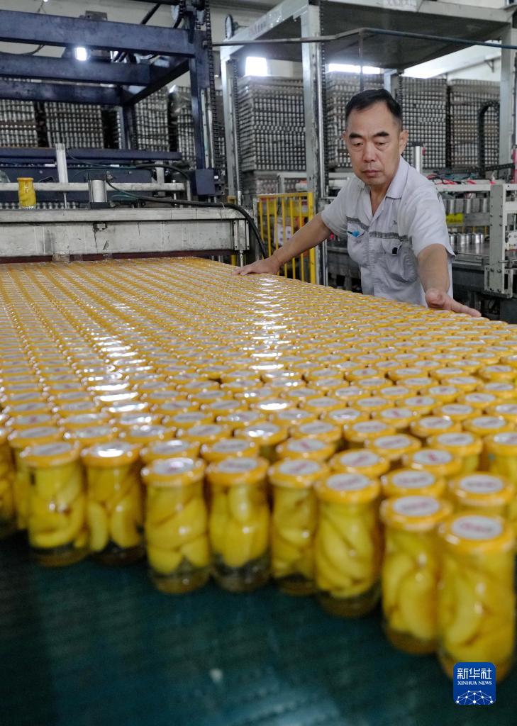 9月14日,河北省晉州市一家果品深加工企業的工人在水果罐頭包裝車間工作。