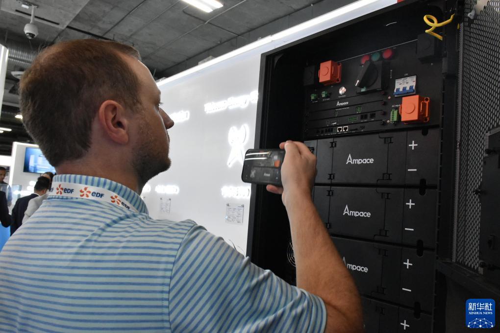 9月12日,在美國拉斯維加斯舉行的北美最大清潔能源展會RE+展會上,一名男子參觀中國企業新能安科技公司展區。