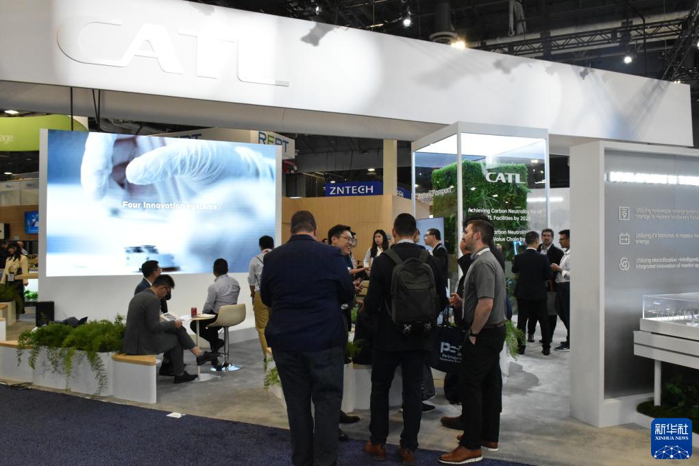 9月12日,人們在美國拉斯維加斯舉行的北美最大清潔能源展會RE+展會上參觀中國企業寧德時代展區。