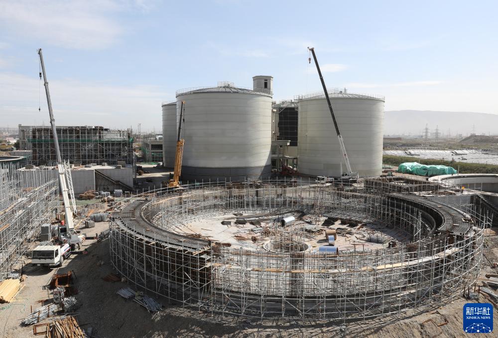這是9月13日在蒙古國首都烏蘭巴托附近拍攝的正在建設中的烏蘭巴托中央污水處理廠。