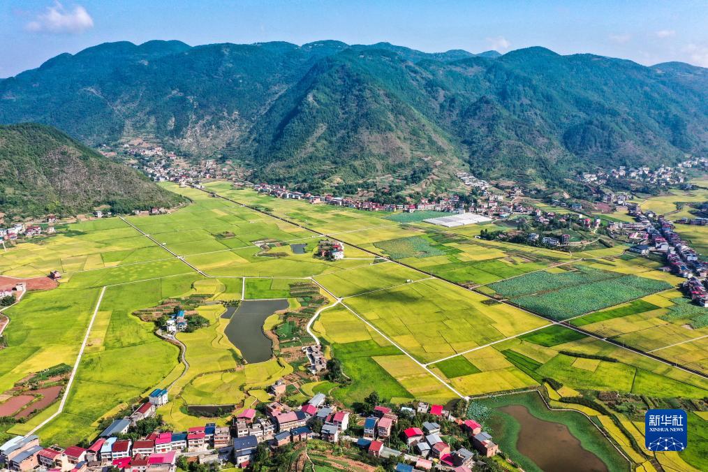金秋時節,重慶市巫山縣廟宇鎮稻谷陸續進入成熟收割期,稻農們搶抓晴好天氣,收割水稻。