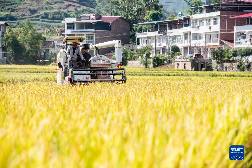 金秋時節,重慶市巫山縣廟宇鎮稻谷陸續進入成熟收割期,稻農們搶抓晴好天氣,收割水稻。