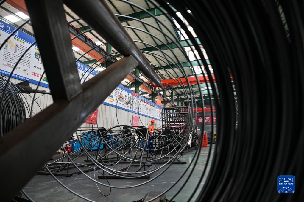 9月14日,工人在渝湘高鐵重慶至黔江段站前3標智能化鋼構廠作業。